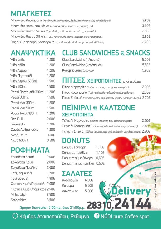 Welcome to NODI Pure Coffee Spot, nestled in the heart of Rethymno, Greece. This charming cafe seamlessly blends a passion for quality coffee with a surprising culinary twist, particularly in their pizza offerings. Whether you're after an invigorating iced latte or a rich lungo, NODI guarantees a perfect brew, as celebrated by both locals and tourists alike who are charmed by its attentive service and authentic flavors.